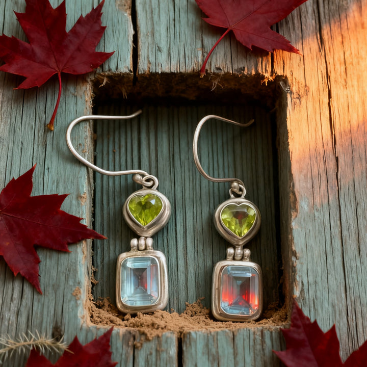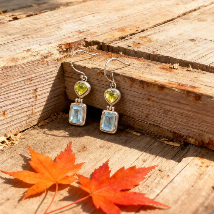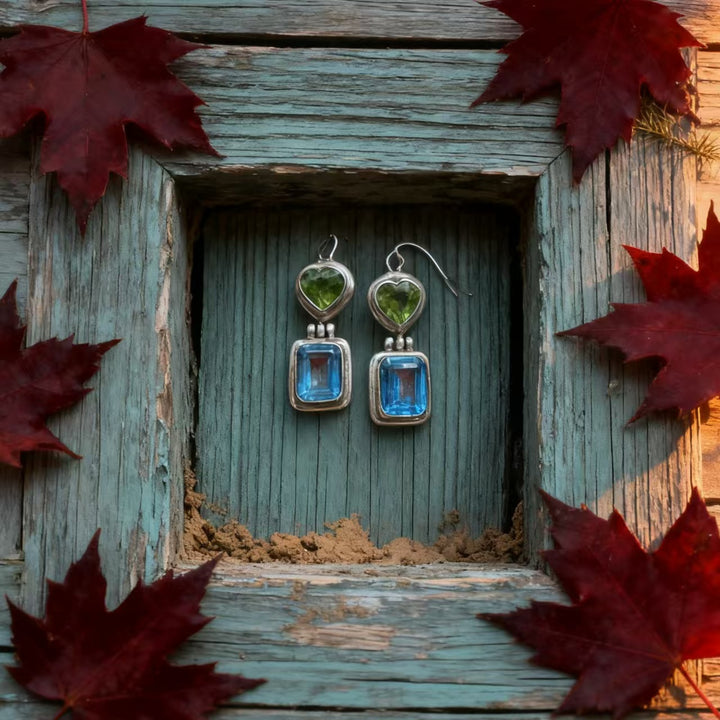 Artisan Handmade: Meticulously crafted by hand, each pair is one-of-a-kind. Every step, from shaping the 925 sterling silver to setting aquamarine and peridot gems, reflects exceptional craftsmanship and attention to detail.