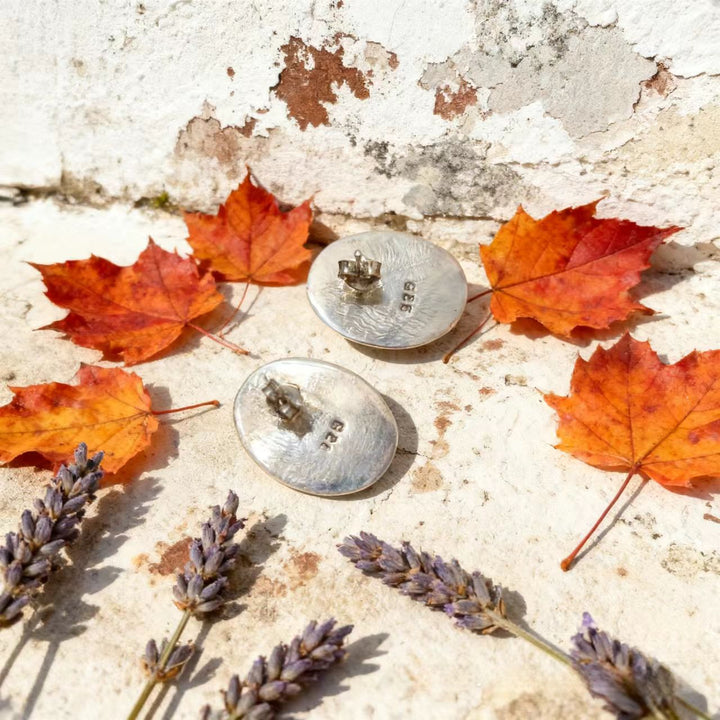 Handmade Bohemian 925 Sterling Silver Oval Stud Earrings with Turquoise Accents