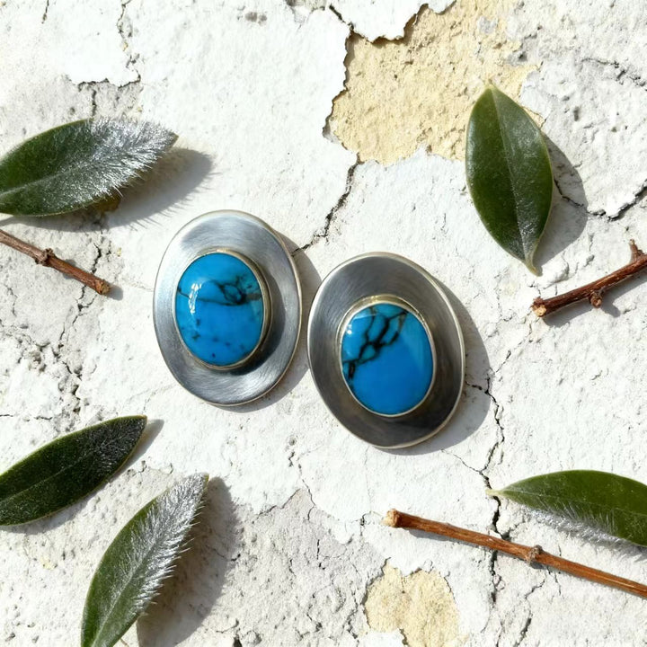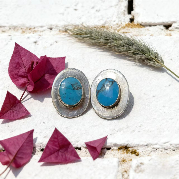 Artisan Handmade: Meticulously crafted by hand, each pair is one-of-a-kind. Every step, from shaping the 925 sterling silver into oval forms to setting the turquoise gems, reflects exceptional craftsmanship and attention to detail.