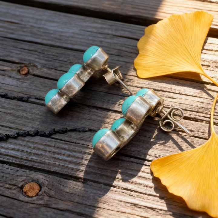 Artisan Handmade: Meticulously crafted by hand, each pair is one-of-a-kind. Every step, from shaping the 925 sterling silver to setting the turquoise stones, reflects exceptional craftsmanship and attention to detail.