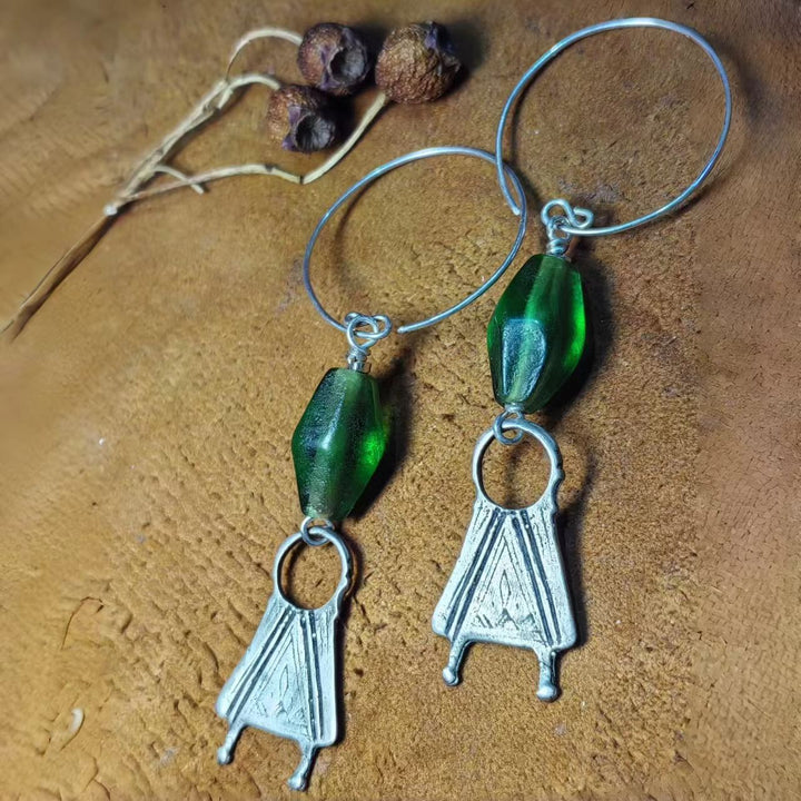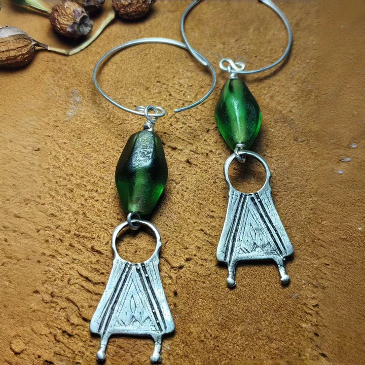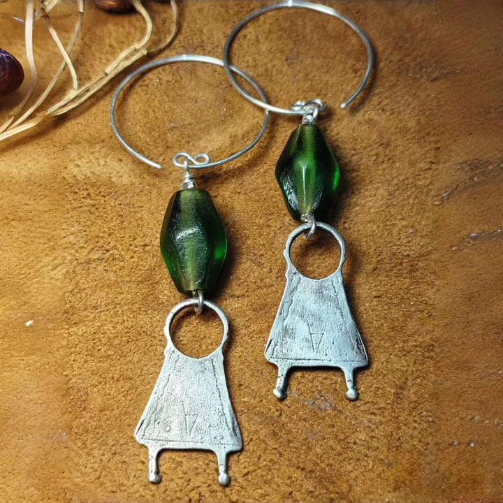 Artisan Handmade: Meticulously crafted by hand, each pair is one-of-a-kind. Every step, from shaping the 925 sterling silver into tribal pendants to integrating green resin elements, reflects exceptional craftsmanship and attention to detail.