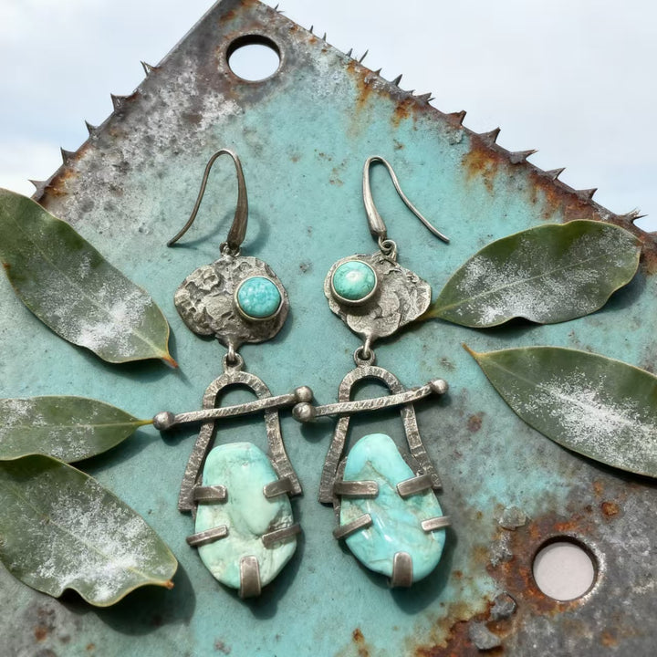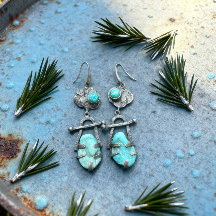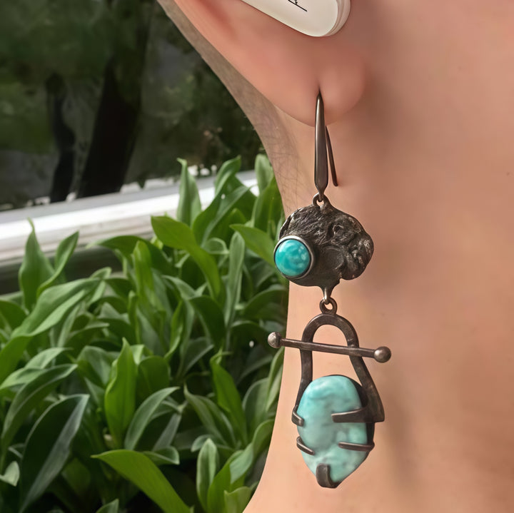 Artisan Handmade: Meticulously crafted by hand, each pair is one-of-a-kind. Every step, from shaping the 925 sterling silver to setting turquoise gems and adding hammered tribal details, reflects exceptional craftsmanship and attention to detail.
