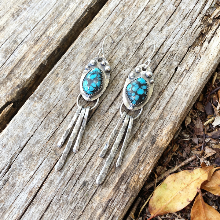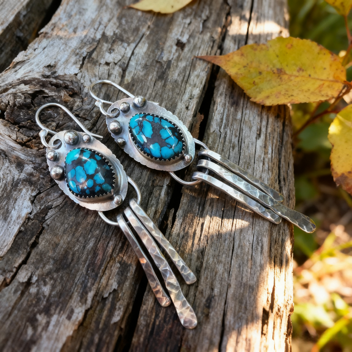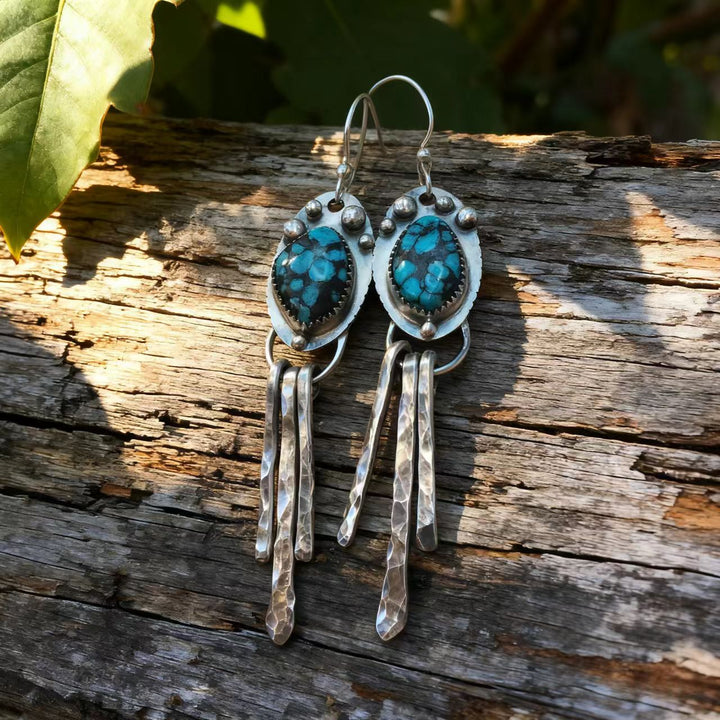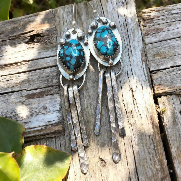 The craftsmanship is evident in every detail, from the careful selection and setting of each turquoise stone to the precise hammering and shaping of the 925 sterling silver. These earrings embody the free-spirited essence of bohemian style, making them an ideal accessory for anyone who values unique, hand-crafted jewelry.