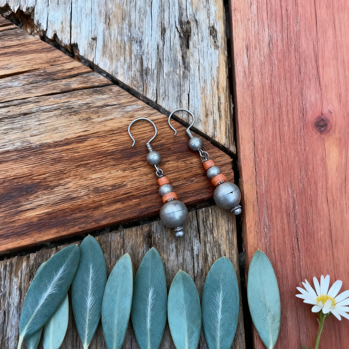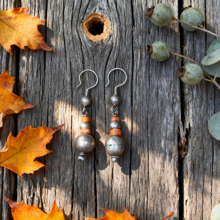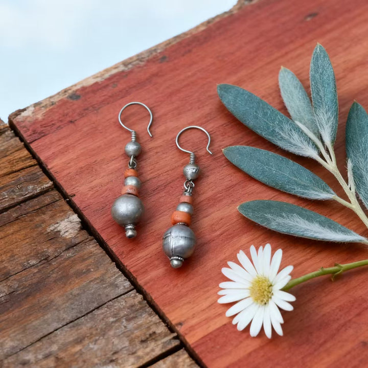 Handmade Bohemian 925 Sterling Silver Vintage Beaded Dangle Earrings with Red Agate Accents