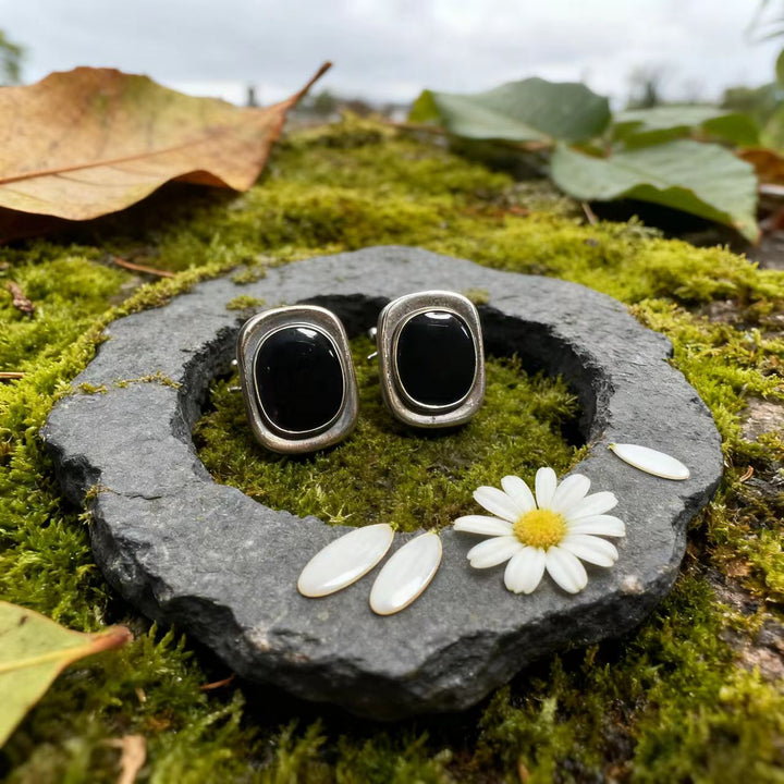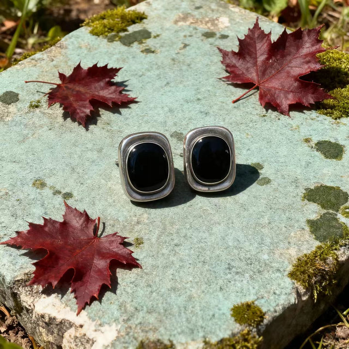 Artisan Handmade: Meticulously crafted by hand, each pair is one-of-a-kind. Every step, from shaping the 925 sterling silver into geometric forms to setting the black onyx gems, reflects exceptional craftsmanship and attention to detail.