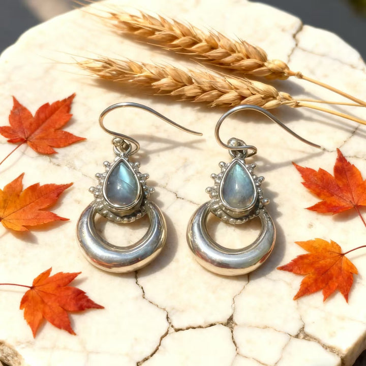Versatile Styling: Ideal for various occasions, these earrings can add a touch of bohemian charm and vintage celestial sophistication to your look, whether it’s daytime or evening. They pair beautifully with other silver, labradorite, or bohemian-vintage style jewelry for a coordinated, stylish ensemble.