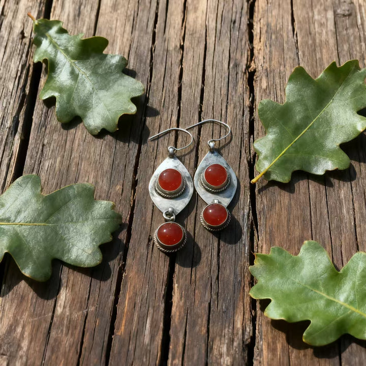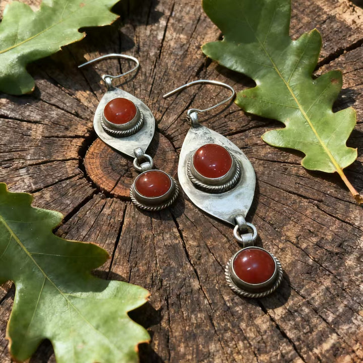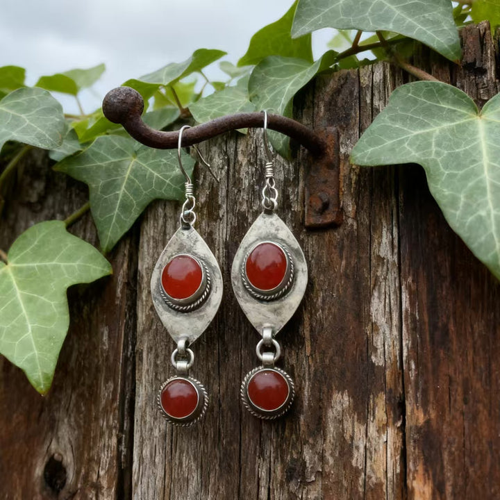 Unique Vintage Teardrop & Silver Design: The combination of red agate accents, intricate rope silver detailing, and teardrop structuring creates a distinct bohemian-vintage look. It’s both timeless and versatile, effortlessly complementing a range of outfits from flowy bohemian dresses to casual denim ensembles.