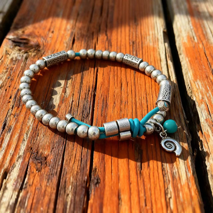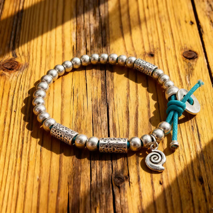 Artisan Handmade: Each bracelet is meticulously crafted by hand, ensuring that every piece is a unique work of art. The careful selection and arrangement of silver beads, the attachment of the turquoise elements and the silver charm, as well as the knotting of the cord, showcase exceptional craftsmanship and attention to detail.