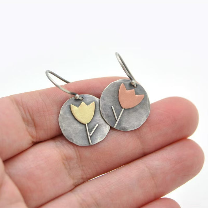 Handmade Bohemian Floral Silver Earrings for Women - Unique Tulip Design