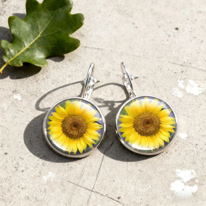 The craftsmanship is evident in every detail, from the precise creation of the sunflower artwork to the careful encasement in resin and assembly of the earring components. These earrings are a perfect blend of artistic flair and nature-inspired charm, ideal for women drawn to bohemian-inspired accessories. Whether you’re at a music festival, a casual gathering, or simply infusing your daily look with boho flair, these earrings are sure to become a beloved part of your jewelry collection.