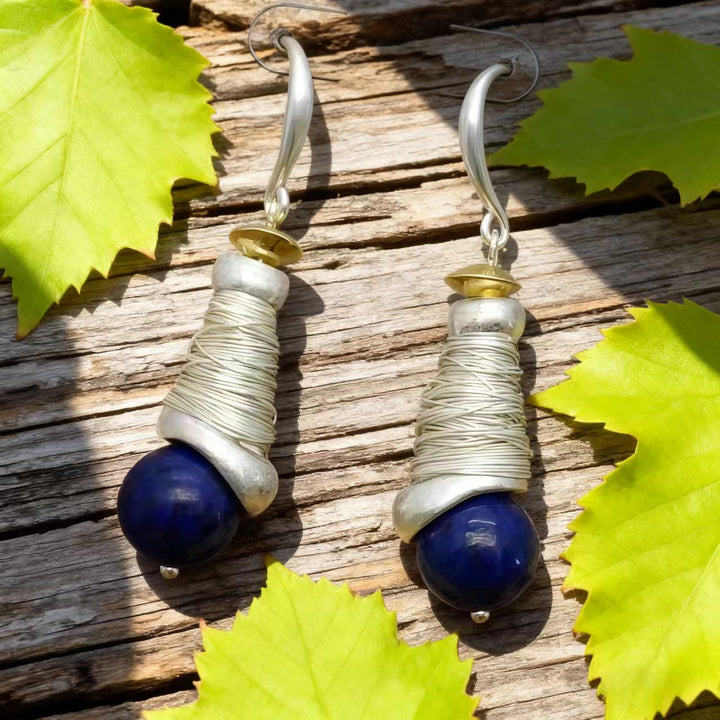 Step into the enchanting world of bohemian fashion with these exquisitely handmade silver drop earrings, featuring a stunning lapis lazuli accent. Each earring showcases a delicate silver wire - wrapped design, crowned with a vibrant lapis lazuli bead. The deep blue hues of the lapis lazuli beautifully complement the silver's lustrous finish, creating a piece that's both artistic and steeped in bohemian charm. Perfect for women who adore unique, handcrafted jewelry, these earrings are ideal for adding a touch of bohemian elegance to any outfit. Whether you're heading to a music festival, a casual outdoor gathering, or simply want to elevate your daily look, these earrings are sure to become a beloved accessory.