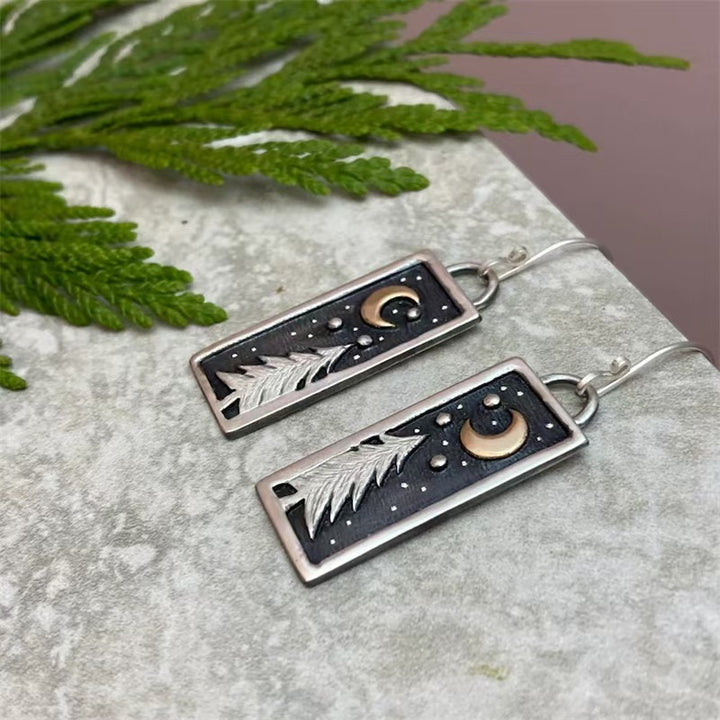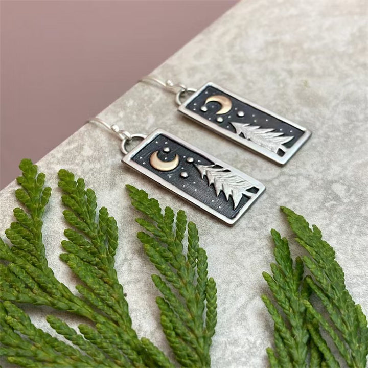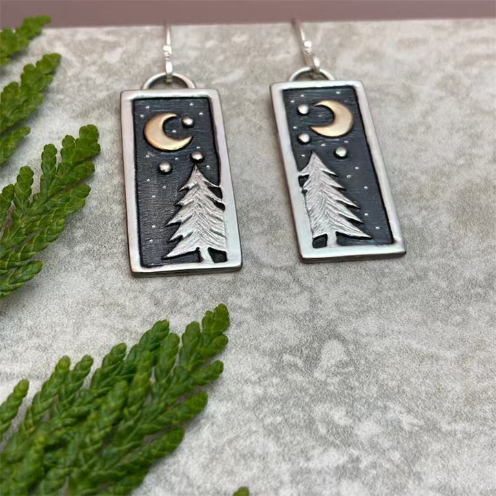 Unique Nightscape Detail: The detailed moon and pine tree patterns create a distinctive and enchanting nightscape look, making these earrings truly special.