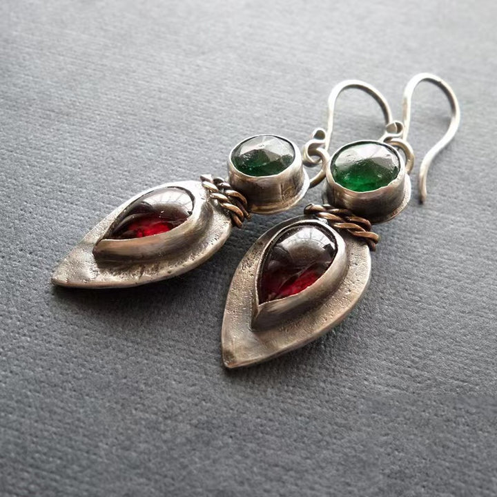 Premium Material Blend: Constructed from high - quality silver, the earrings offer durability, a classic silver luster, and resistance to tarnish. Silver's hypoallergenic properties make it suitable for those with sensitive ears, allowing for comfortable all - day wear. The garnet and jade inlays add a touch of natural beauty and color, with garnet's deep red and jade's vibrant green enhancing the earrings' bohemian appeal.