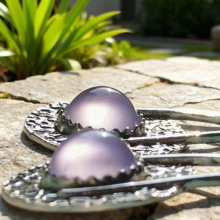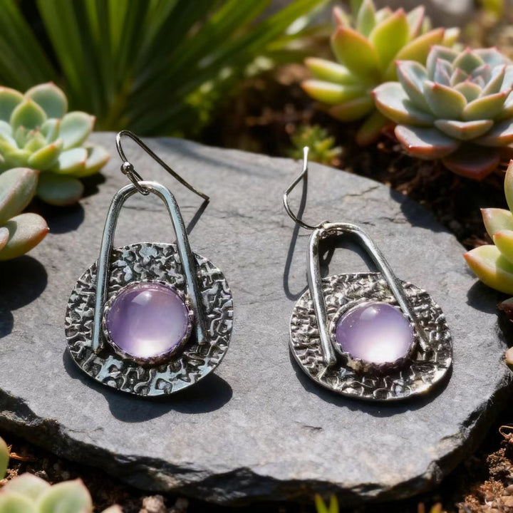 Artisan Handmade: Every pair of these earrings is meticulously crafted by hand, ensuring that each piece is truly one - of - a - kind. From shaping and texturing the silver discs to precisely setting the purple crystal, every step reflects exceptional craftsmanship and attention to detail.