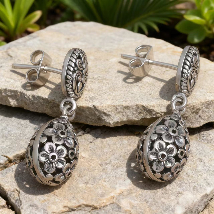 Artisan Handmade: Every pair of these earrings is meticulously crafted by hand, ensuring that each piece is truly one - of - a - kind. From shaping the silver into the oval top and teardrop drop to creating the intricate filigree flower patterns, every step reflects exceptional craftsmanship and attention to detail.