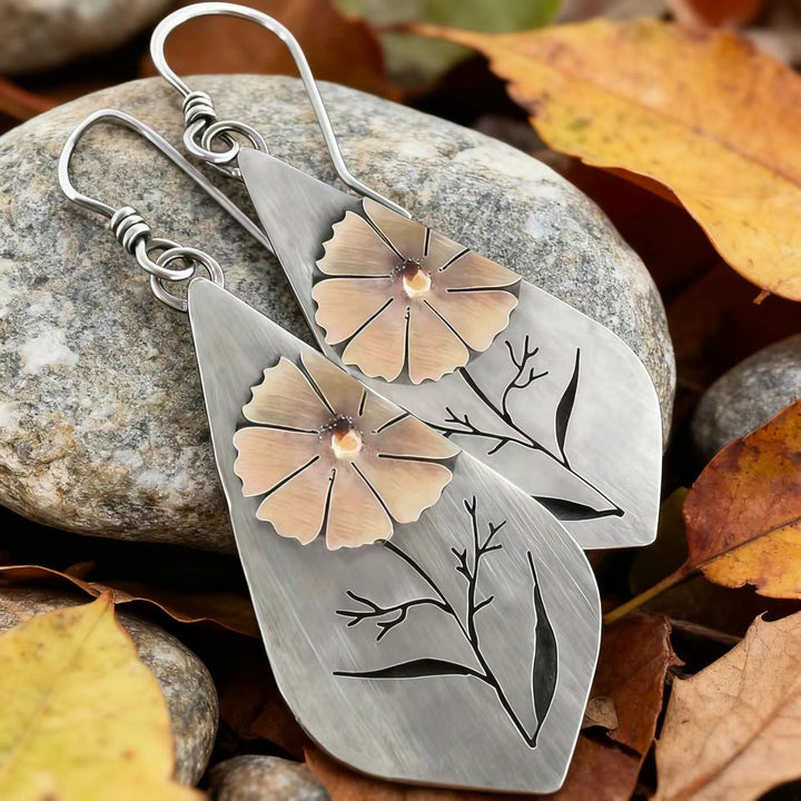 Step into the enchanting world of bohemian style with these exquisitely handmade silver floral earrings. Each earring showcases a unique design: a teardrop - shaped silver base is adorned with a delicate floral motif, featuring a light - hued flower at the center and intricate branch and leaf details etched into the silver. The craftsmanship is evident in the precise detailing of the floral design and the smooth finish of the silver, creating a piece that's both artistic and full of bohemian charm. Perfect for women who love Unique, handcrafted jewelry, these earrings are ideal for adding a touch of bohemian elegance to any outfit. Whether you're heading to a music festival, a casual gathering, or simply want to elevate your daily look, these earrings are sure to become a beloved accessory.