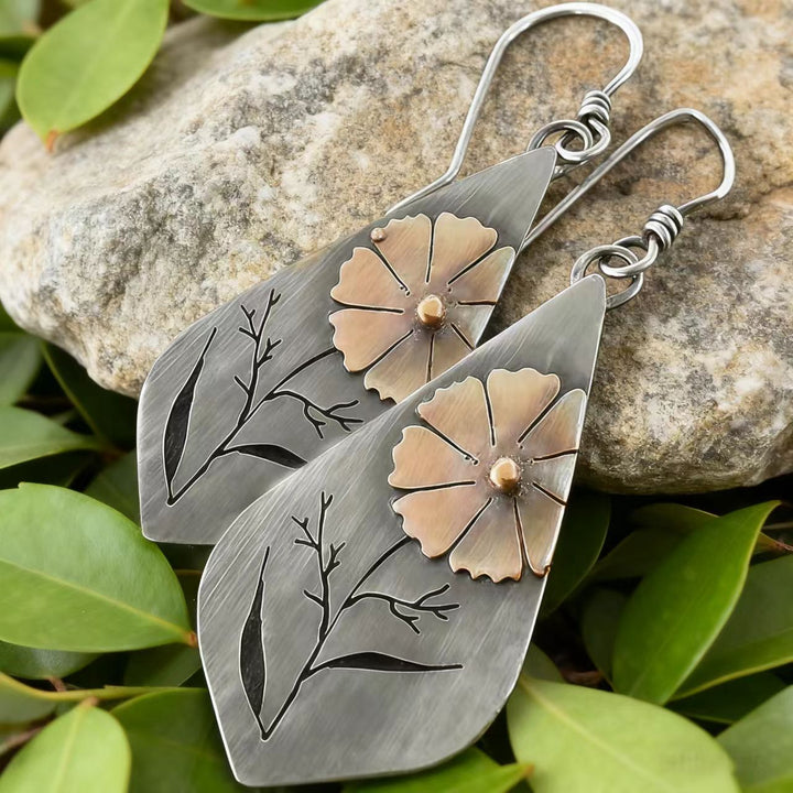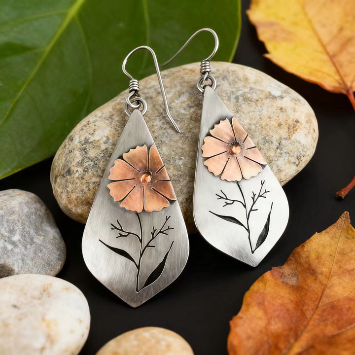 Unique Bohemian Floral Design: The combination of the teardrop - shaped silver base and the detailed floral and branch motifs creates a distinct bohemian aesthetic. The design is both elegant and eye - catching, making these earrings a standout accessory that can effortlessly complement a wide range of outfits, from bohemian - inspired dresses to modern casual wear.