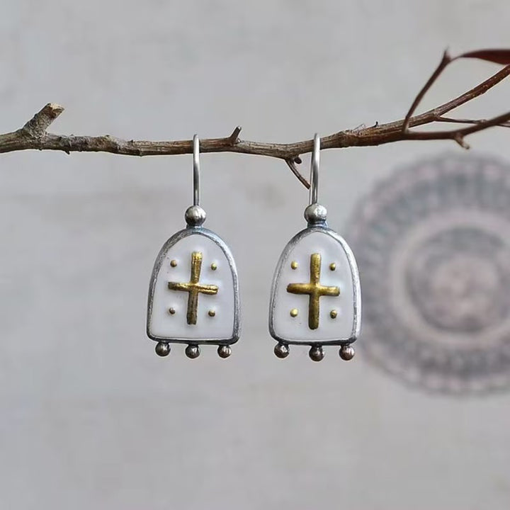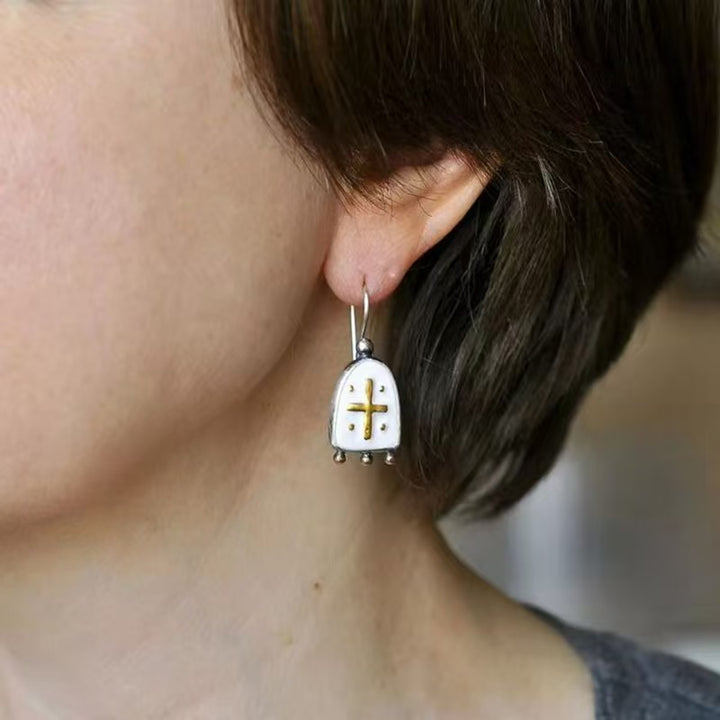 Unique Bohemian Graffiti Design: The combination of the white enamel, golden cross, and silver frame creates a distinct bohemian graffiti aesthetic. The design is both elegant and eye-catching, making these earrings a standout accessory that can effortlessly complement a wide range of outfits, from bohemian-inspired dresses to modern casual wear.