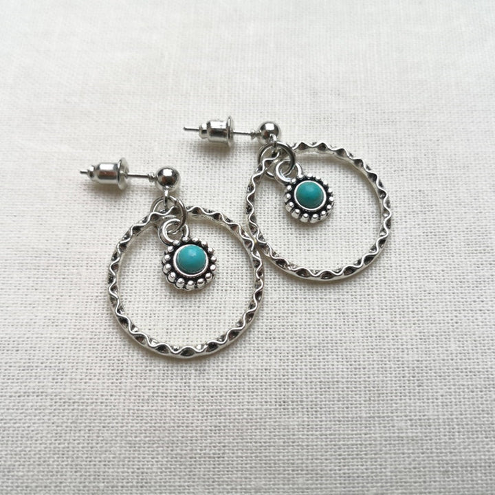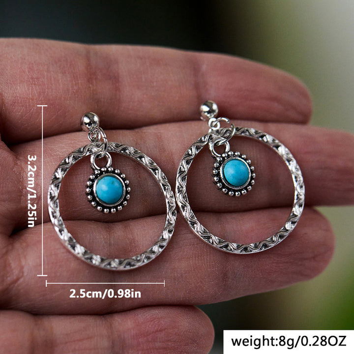 Bohemian Aesthetic: The combination of silver hoops and turquoise stones captures the essence of bohemian style, offering a free - spirited and fashionable look.