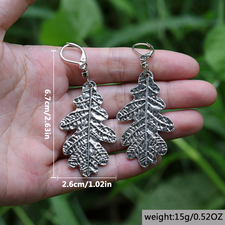 Handmade Bohemian Silver Oak Leaf Earrings for Women