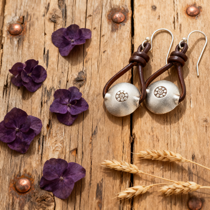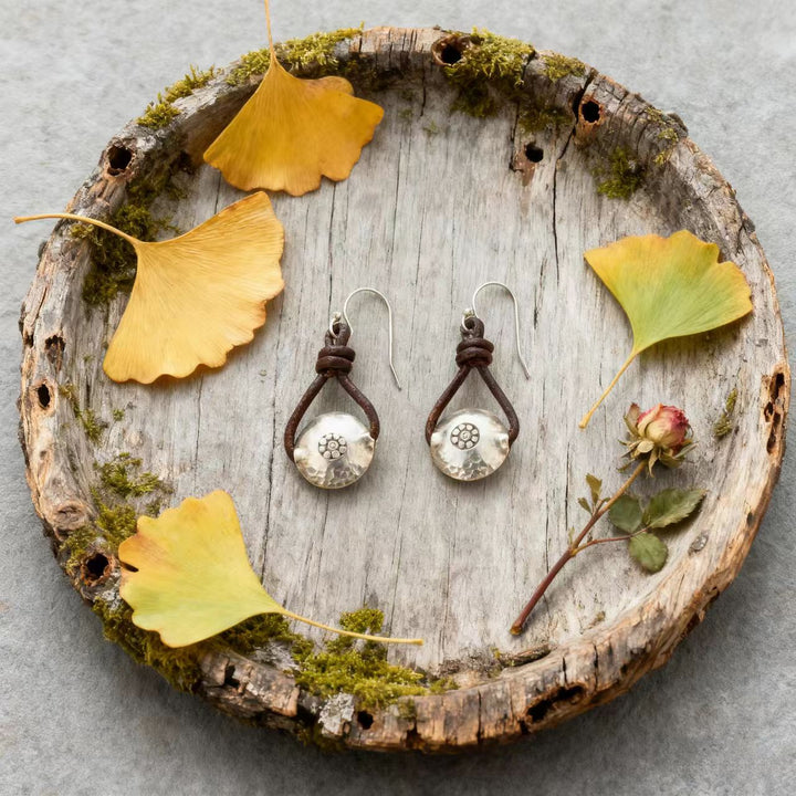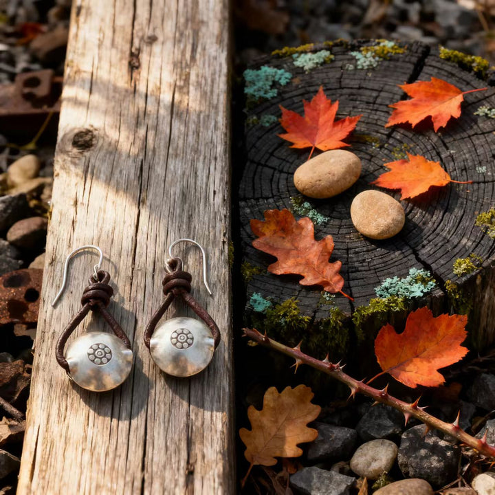 Artisan Handmade: Meticulously crafted by hand, each pair is one-of-a-kind. Every step, from shaping the 925 sterling silver disc to knotting the leather cord, reflects exceptional craftsmanship and attention to detail.