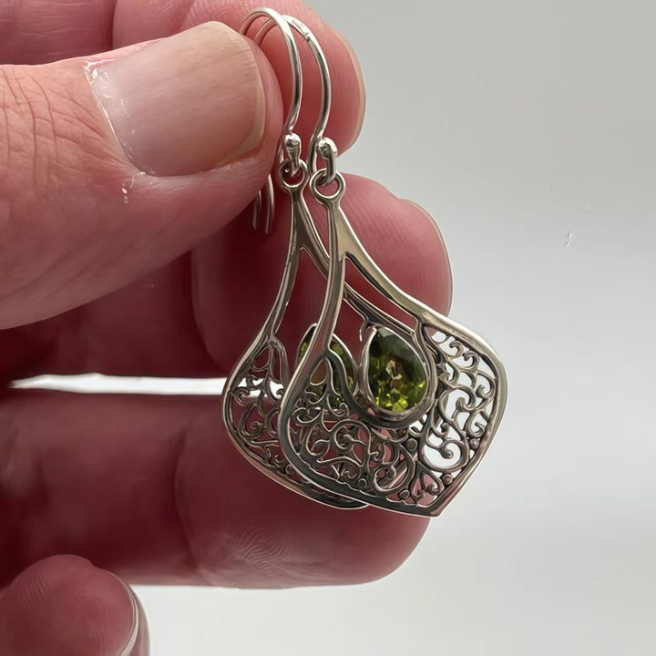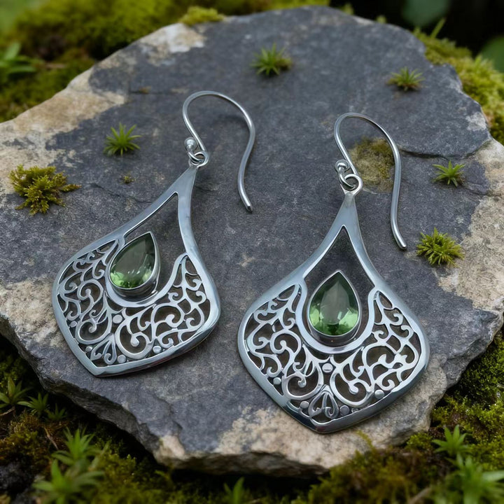 Artisan Handmade: Every pair of these earrings is meticulously crafted by hand. From shaping the silver into the elegant teardrop form, to creating the intricate filigree patterns, and finally setting the peridot stone, each step is carried out with exceptional skill and attention to detail, ensuring that every piece is unique.