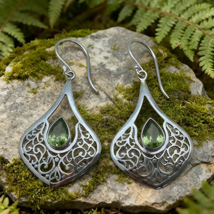 Unique Bohemian Design: The combination of the teardrop - shaped silver frame, intricate filigree patterns, and the peridot inlay creates a distinct bohemian aesthetic. The design is both eye-catching and versatile, making these earrings a standout accessory that can effortlessly complement a wide range of outfits, from flowy bohemian dresses to casual denim ensembles.