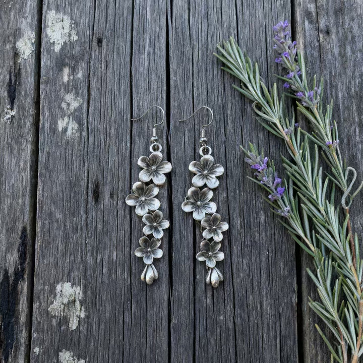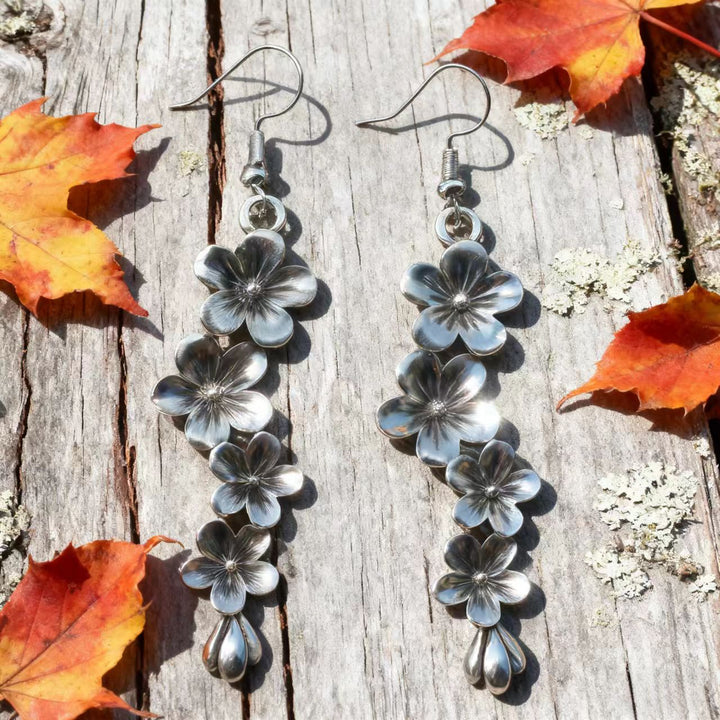 The craftsmanship is evident in every detail, from the precise shaping of each silver petal to the careful assembly of the floral clusters. These earrings are a perfect blend of artistic flair and organic charm, ideal for women drawn to bohemian-inspired accessories. Whether you’re at a music festival, a casual gathering, or simply infusing your daily look with boho sophistication, these earrings are sure to become a beloved part of your jewelry collection.