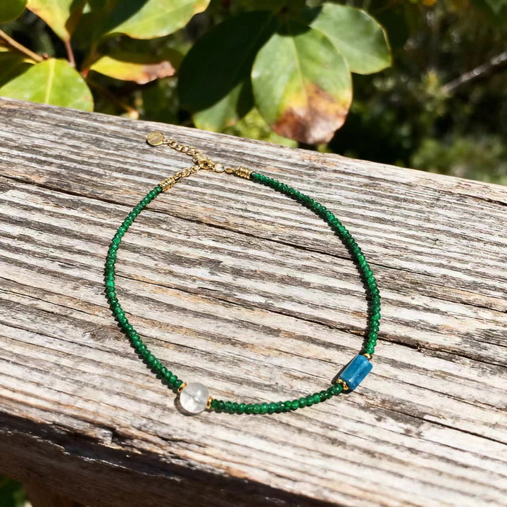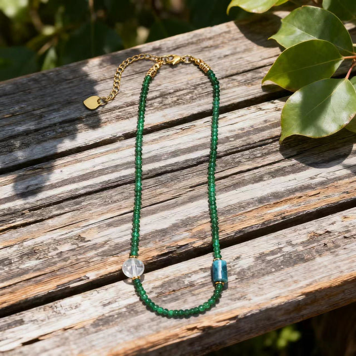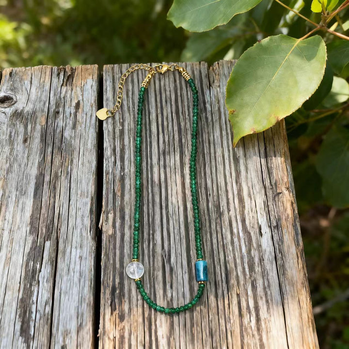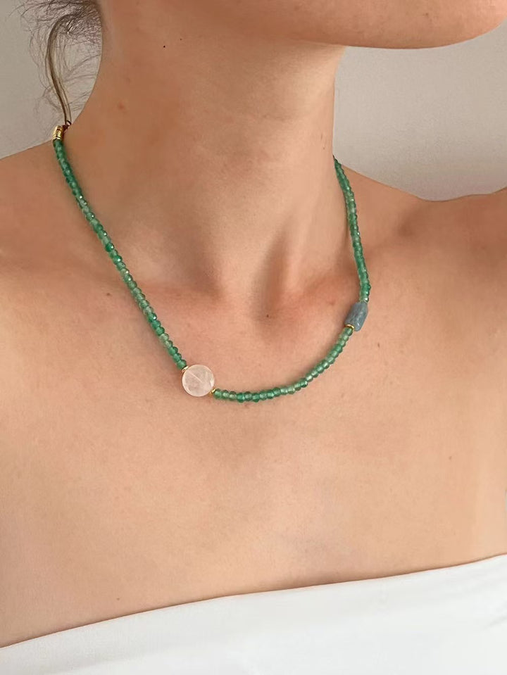 Diverse Gemstone Blend: The combination of rich green natural stones, clear crystal, and elegant jade creates a visually stunning and harmonious aesthetic. Each gemstone brings its own unique beauty and energy, making the necklace a captivating accessory.