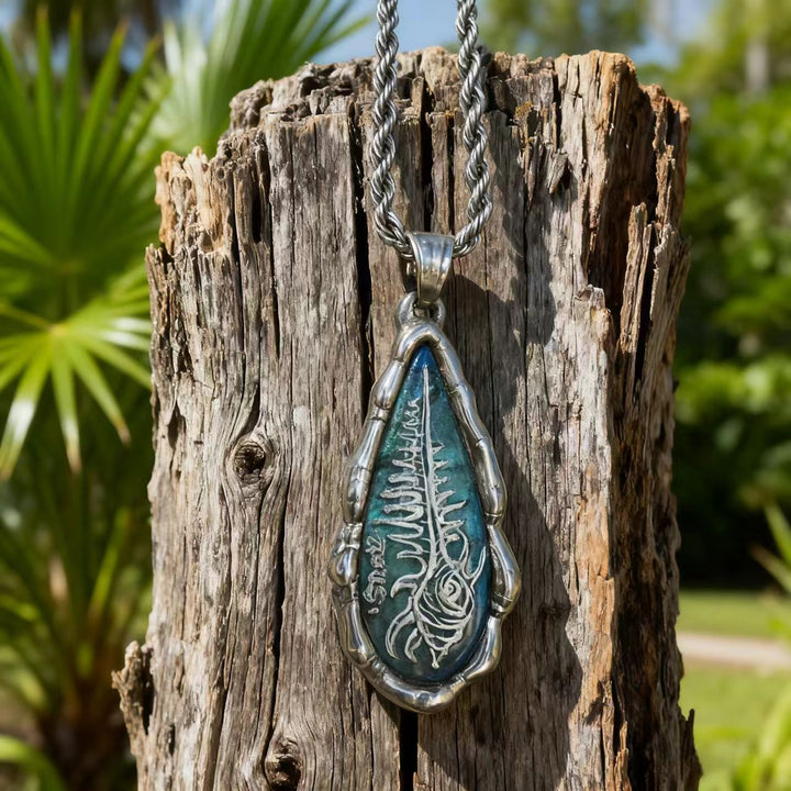Quality Material Blend: The necklace combines high - quality materials. The titanium steel chain offers durability, resistance to corrosion, and a sleek appearance. The labradorite stone, known for its iridescent play of colors, adds a natural and mesmerizing element. The use of eco-friendly tin foil not only contributes to sustainability but also provides a unique canvas for the hand - painted art.