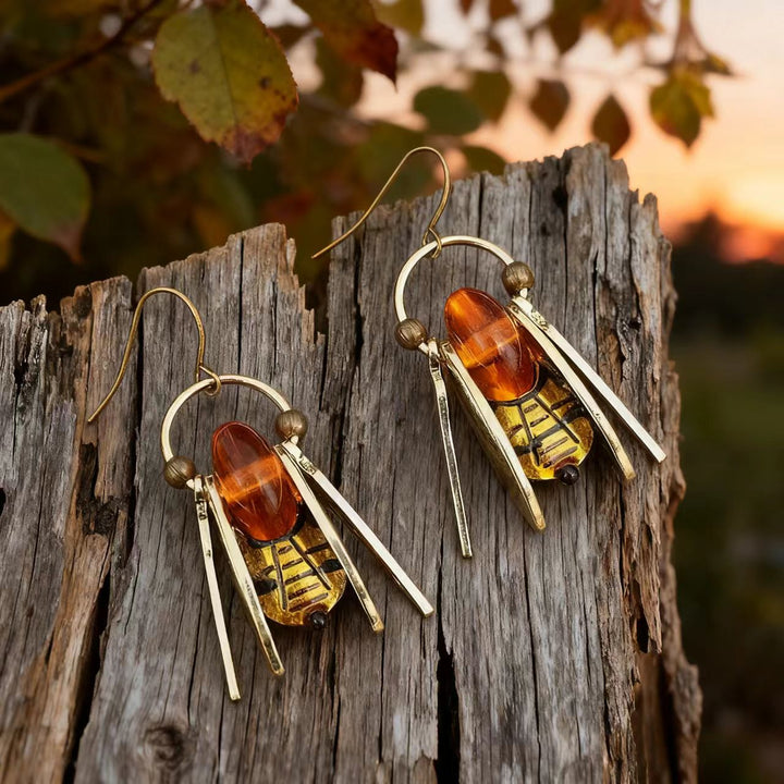 Handmade Boho Copper Bee Earrings with Amber Accents