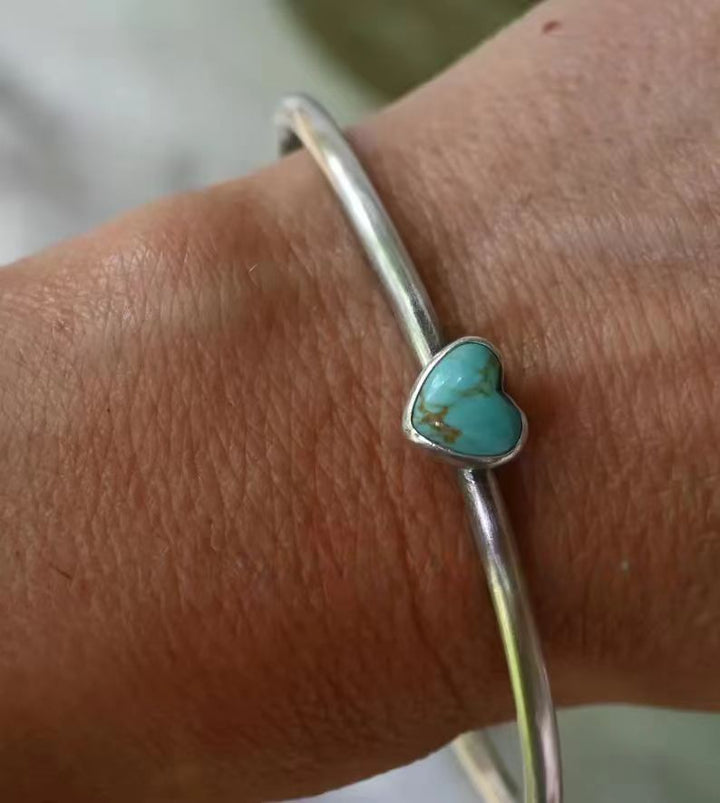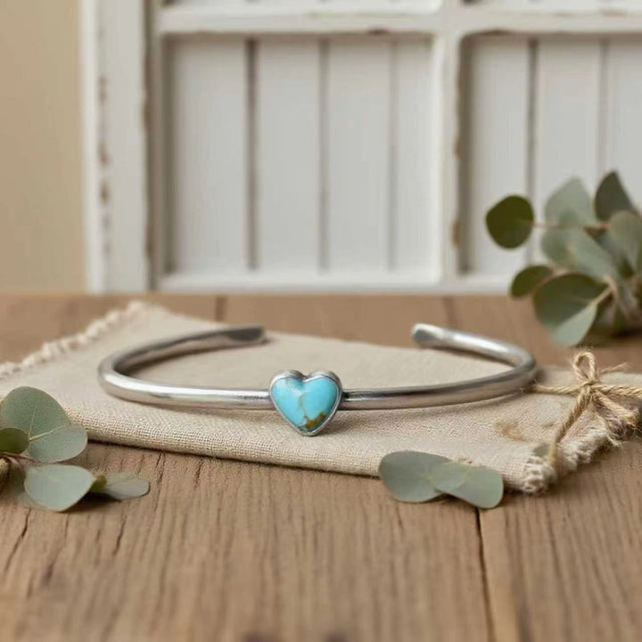 Handmade Kingman Turquoise Heart Cuff Bracelet: Sterling Silver Bracelet for Women