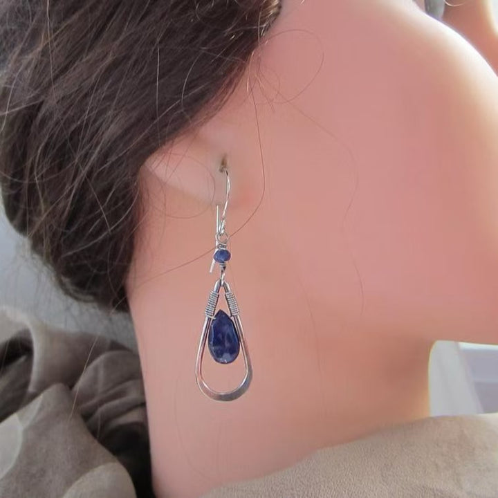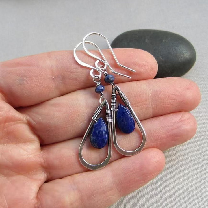 Handmade Lapis Lazuli Teardrop Earrings - Sterling Silver Artisan Jewelry for Women