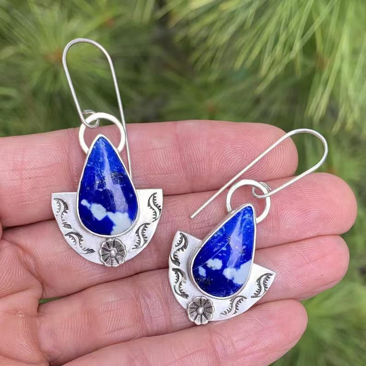 Elevate your jewelry collection with these exquisite Handmade Lapis Lazuli Teardrop Earrings. Featuring genuine lapis lazuli stones with their signature deep blue hue and natural white flecks, each piece is artisan-crafted and set in sterling silver for durability and timeless shine. The delicate teardrop design with bohemian-inspired silver detailing makes these earrings a versatile accessory for both casual and formal occasions. Perfect as a statement piece or a thoughtful gift, these earrings combine natural beauty with artistic craftsmanship.