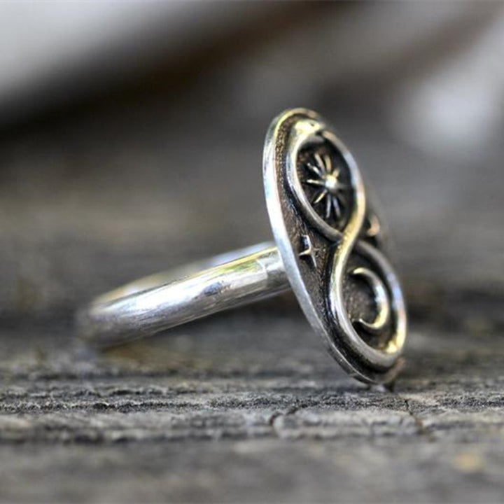 Handmade Ouroboros Sterling Silver Ring with Sun, Moon & Stars - Artisan Crafted for Spiritual Jewelry Lovers
