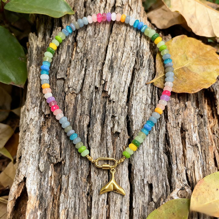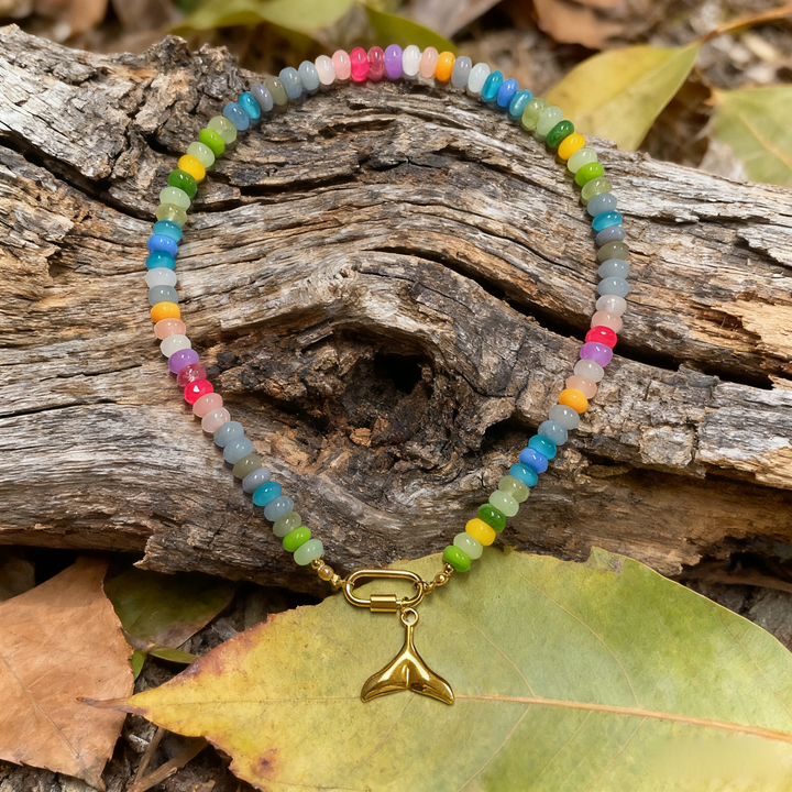 Spice up your accessory game with this exquisitely handmade bracelet, a true testament to unique craftsmanship and vibrant style. Featuring an array of colorful natural stones meticulously strung together, and complemented by a sturdy titanium steel clasp and an adorable gold - toned mermaid tail charm. Ideal for American women who love bohemian and ocean - inspired fashion, this bracelet is perfect for adding a pop of color and a touch of whimsy to any outfit. Whether you're heading to a beach party, a music festival, or just want to brighten up your daily look, it's bound to become a favorite piece in your jewelry collection.