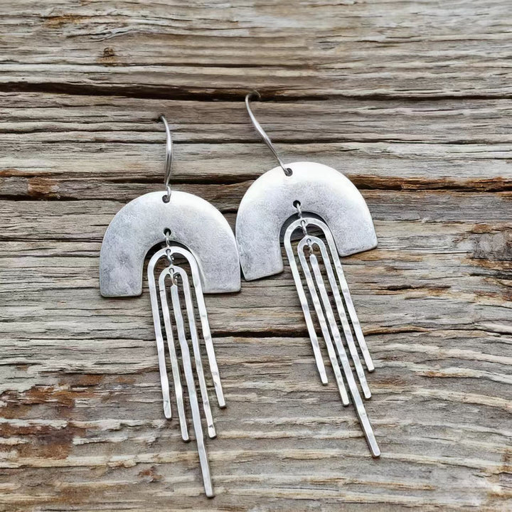 Artisan Handmade: Every pair of these earrings is carefully crafted by hand, ensuring that each piece is truly one - of - a - kind. The process of shaping the silver into the half - moon top and creating the dangling bars highlights the skill and attention to detail that goes into making these stunning earrings.