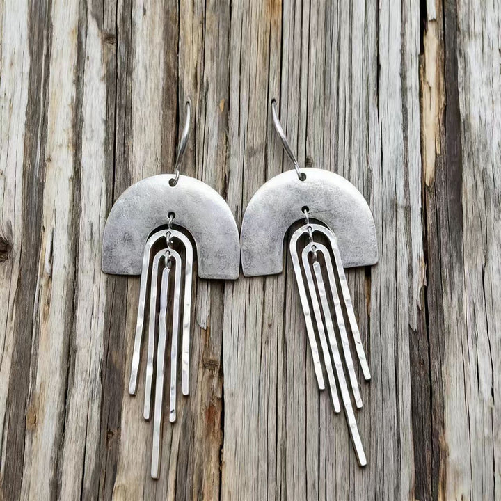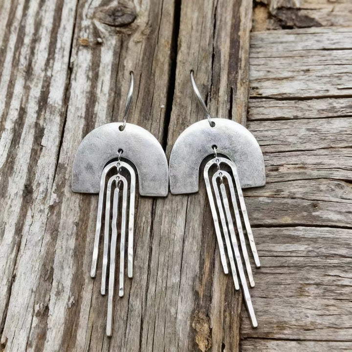 Step into the world of bohemian charm with these exquisitely handmade silver dangle earrings. Each earring features a unique design with a half - moon shaped silver top and cascading silver bars that dangle gracefully. Whether you're heading to a music festival, a casual gathering, or simply want to elevate your daily look, these earrings are sure to become a beloved accessory.