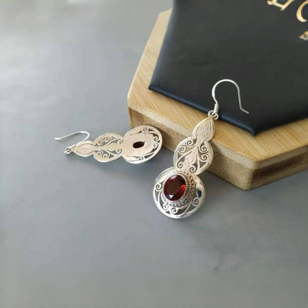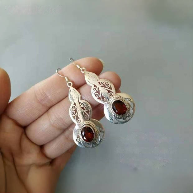 Intricate Floral Detailing: The delicate floral patterns on the silver are carefully crafted, adding an element of artistry and femininity. The garnet, as the centerpiece, enhances the overall elegance of the design, making these earrings stand out in any jewelry collection.
