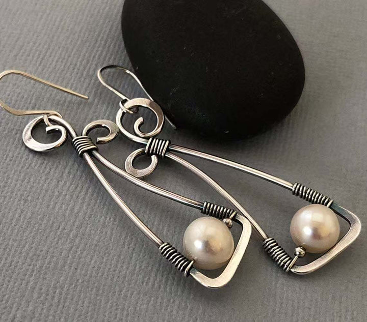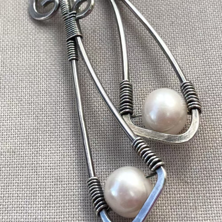 Handmade Silver Pearl Earrings, Artisan Crafted Dangle Earrings for Women, Unique American Style Jewelry