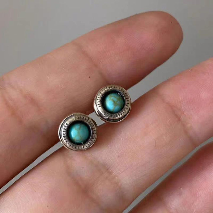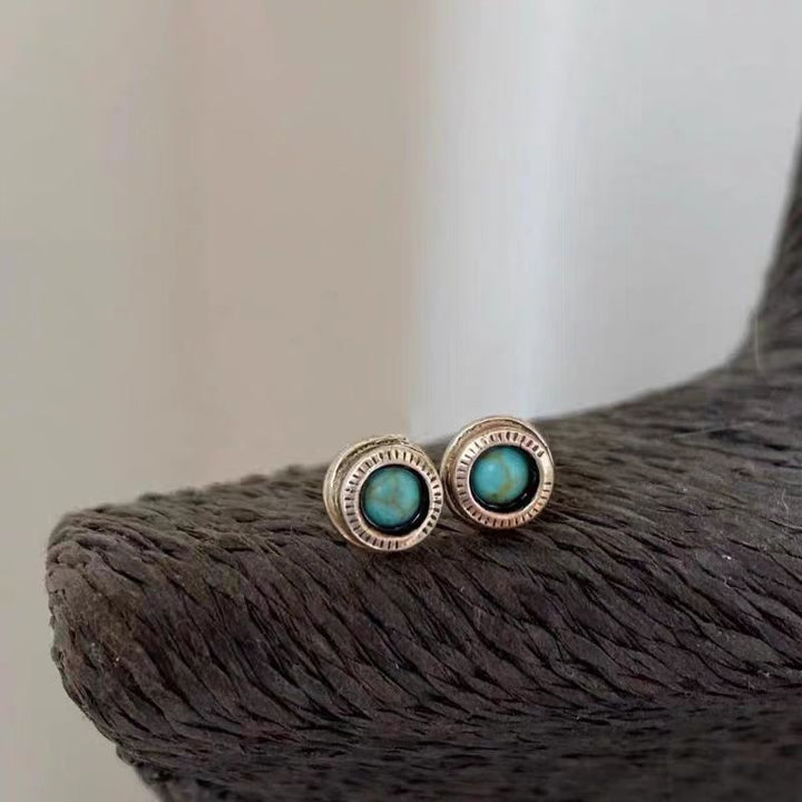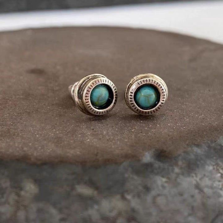 Add a touch of bohemian elegance to your jewelry collection with these exquisitely handmade silver stud earrings. Skillfully crafted, each earring features a stunning turquoise stone set in a delicately detailed silver frame. The combination of the vibrant blue - green of the turquoise and the classic luster of silver makes these earrings a perfect accessory for American women who cherish unique, artisanal jewelry. Whether you're dressing up for a special occasion or adding a subtle charm to your everyday look, these earrings are sure to catch the eye and become a staple in your jewelry box.