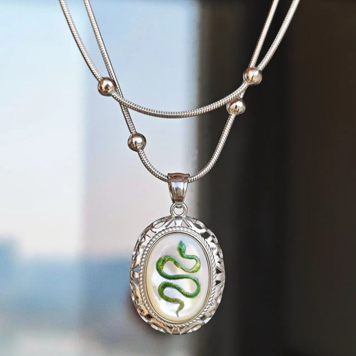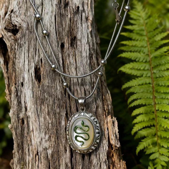 Unique Snake Motif: The hand - painted snake pattern brings a sense of mystery and nature - inspired charm, making the necklace a standout piece that resonates with bohemian and eclectic style preferences.