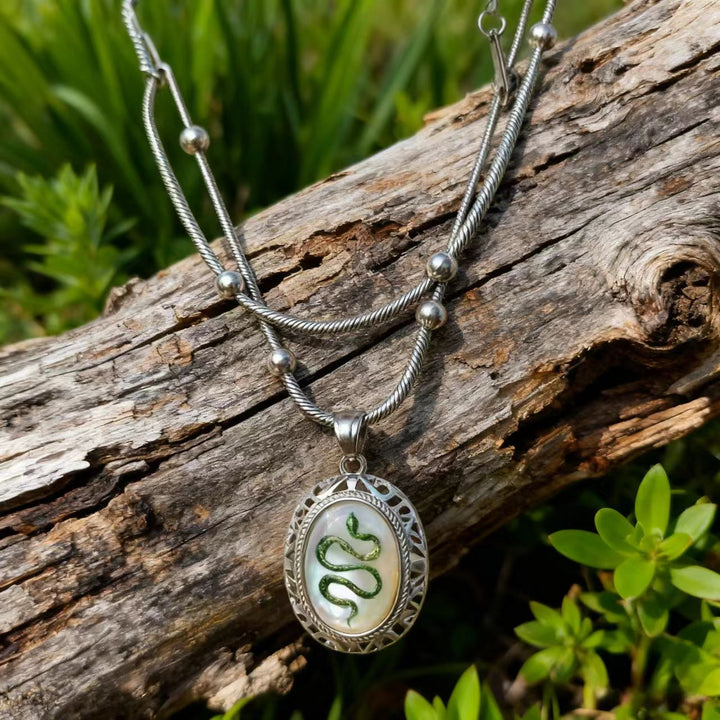 Artisan Handmade & Hand - Painted: Each necklace is meticulously crafted by hand, with the snake pattern on the mother - of - pearl pendant painted by skilled artisans. This ensures every piece is unique, highlighting exceptional attention to detail and artistic talent.