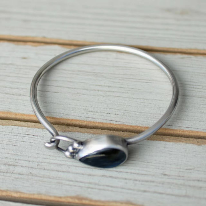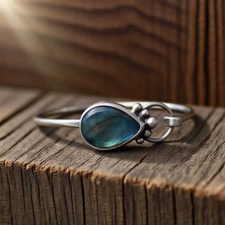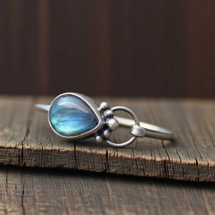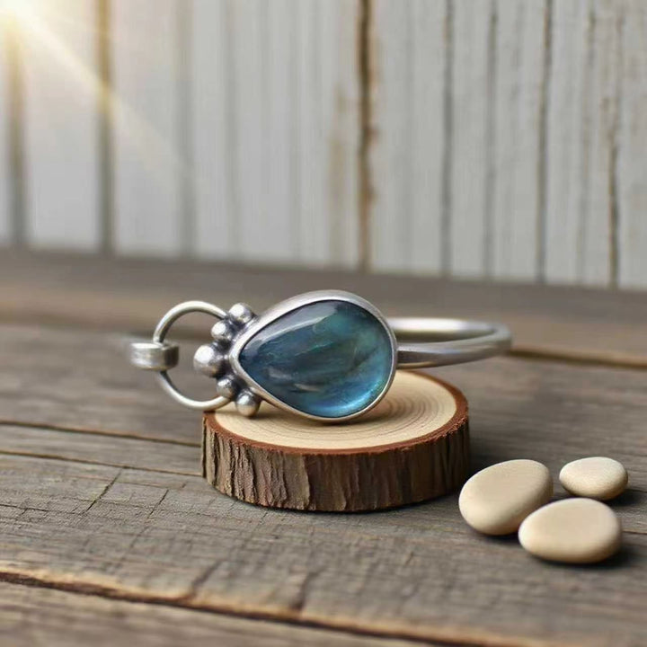 Handmade Teardrop Shaped Labradorite Sterling Silver Bracelet: Blue Sparkling Gemstone