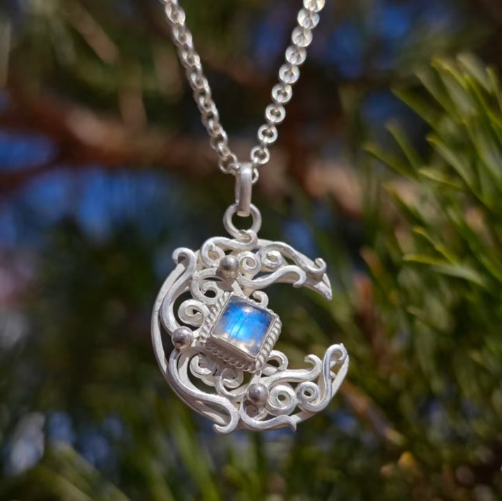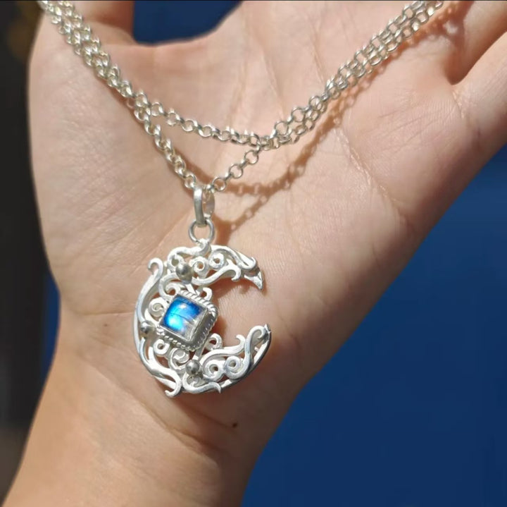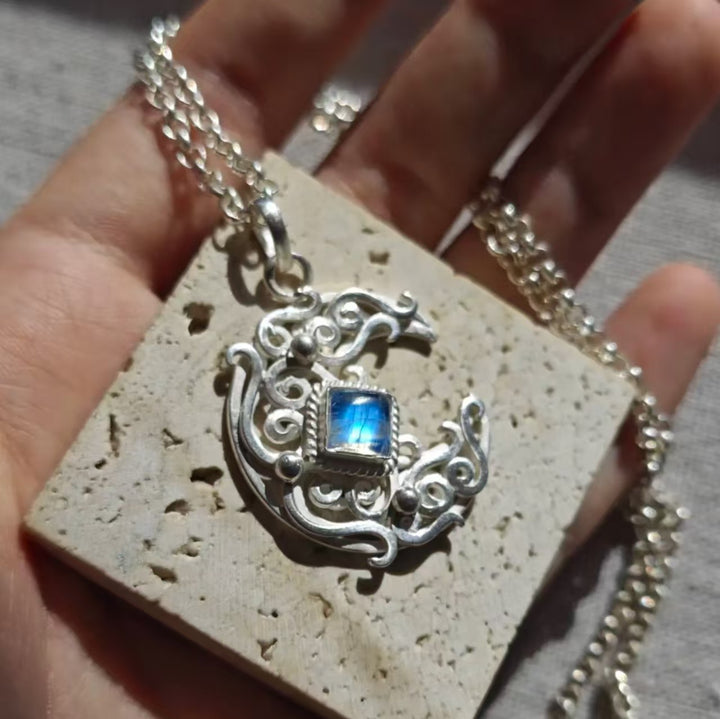 Artisan Handmade: Each necklace is meticulously crafted by hand. Skilled artisans shape the 925 silver into the intricate crescent design and carefully set the moonstone, ensuring every piece is unique and of the highest quality.