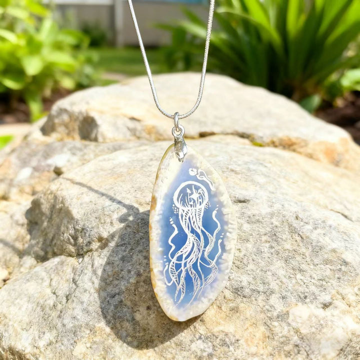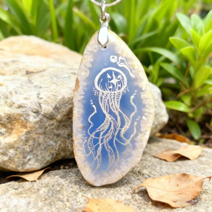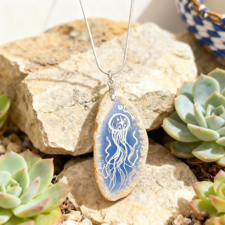 Artisan Handmade: Each necklace is meticulously crafted by hand. The process of painting the jellyfish on the agate pendant requires exceptional skill and attention to detail, ensuring that no two pieces are alike. This handmade touch makes each necklace a unique work of art.