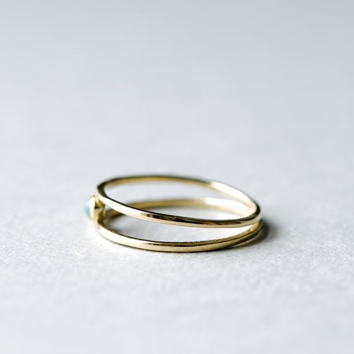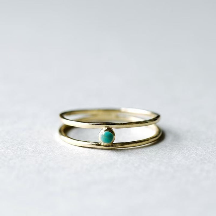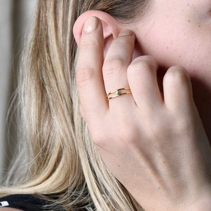 Handmade Turquoise Gold Ring | Artisan Crafted Double Band Ring for Women