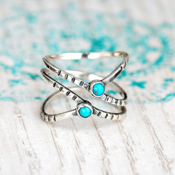 Elevate your jewelry collection with this exquisitely handmade turquoise sterling silver ring. Crafted with meticulous care, it embodies the free-spirited boho vibe that resonates deeply with American style lovers. The striking turquoise stones, set in durable sterling silver with artisanal detailing, add a pop of color and a touch of vintage charm to any outfit. Whether you're dressing up for a special occasion or adding a unique accent to your daily look, this ring is designed to be a timeless piece you'll treasure. Perfect for those who appreciate the artistry of handcrafted jewelry.