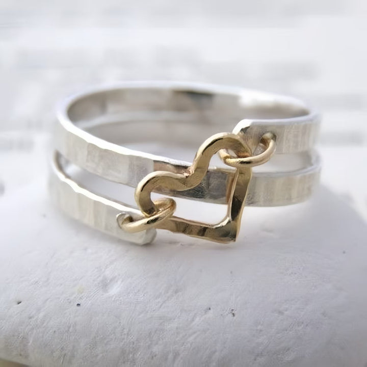 Handmade Two - Tone Heart Ring | Artisan Crafted Silver & Gold - Filled Jewelry for Women