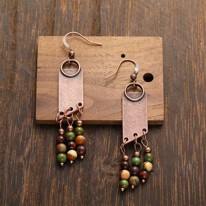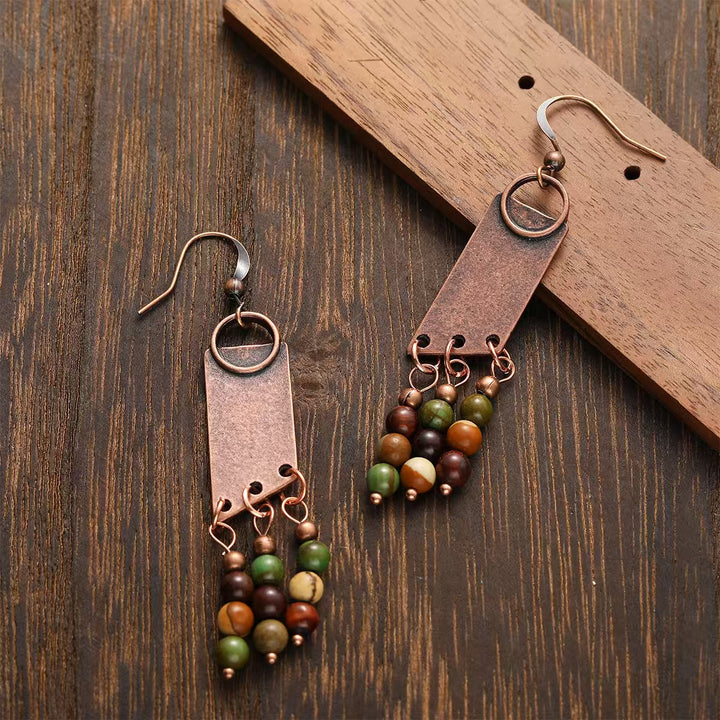 Add a touch of bohemian vintage charm to your look with these stunning handmade dangle earrings! Expertly crafted, they feature a beautiful combination of silver and copper, with colorful beaded tassels that sway gracefully with your every move. Perfect for women who love unique, artisanal jewelry, these earrings will bring a retro yet vibrant feel to any outfit. Whether you're heading to a music festival or just want to elevate your daily style, these earrings are a must-have.